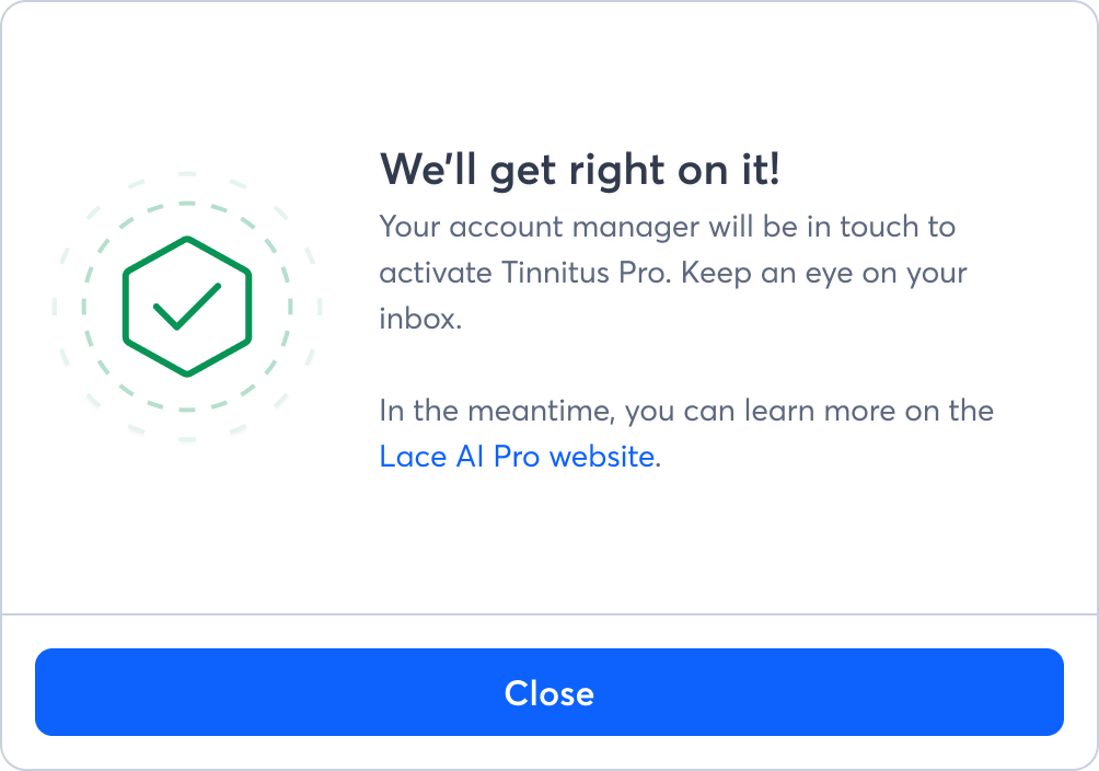 - They’ll complete activation and let you know when Tinnitus Pro is ready for your team.