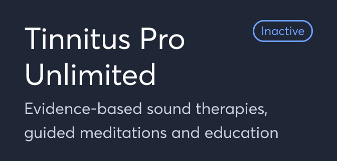 - In Overview, find the Tinnitus Pro Unlimited card (it will show as Inactive if you don’t have it yet).