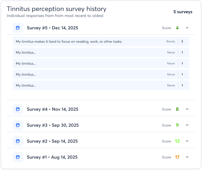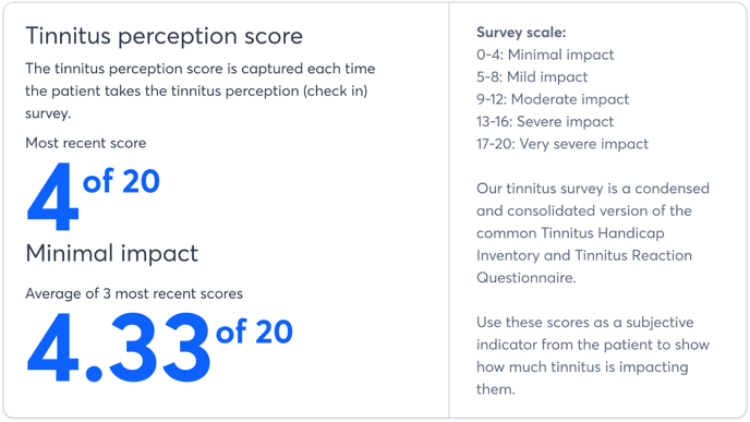 - Ask patients to complete regular tinnitus check-ins to keep the perception score current.